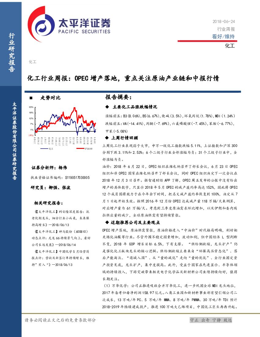 太平洋证券:化工行业周报:OPEC增产落地,重点关注原油产业链和中报行情.pdf