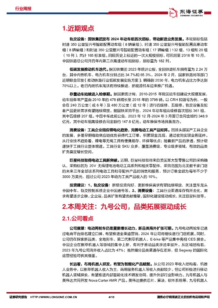 东海证券:机械设备行业周报:轨交设备国内迎机遇,消费设备海外拓品类.pdf