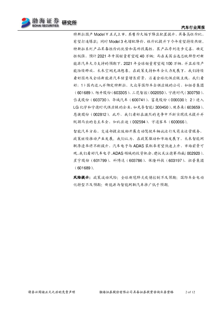 渤海证券:新能源汽车行业周报:新能源汽车补贴新政发布,国产Model Y正式上市.pdf