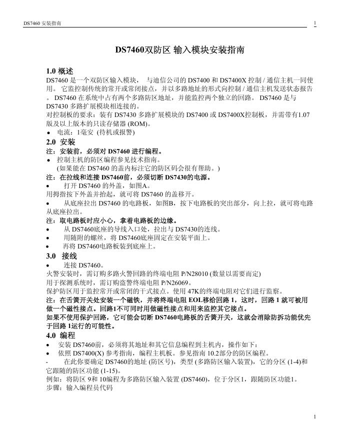 BOSCH DS7460双防区 输入模块安装指南.pdf