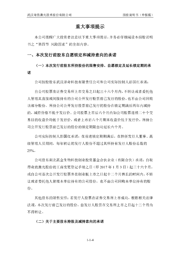 武汉奇致激光技术股份有限公司深交所创业板IPO上市招股说明书.pdf