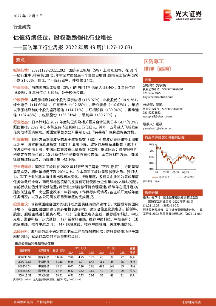 光大证券:国防军工行业周报2022年第49周:估值持续低位,股权激励催化行业增长.pdf
