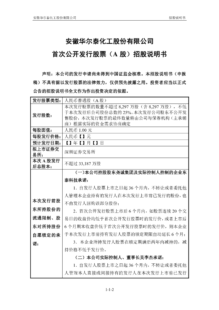 安徽华尔泰化工股份有限公司深交所主板IPO上市招股说明书.pdf