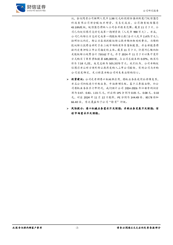 财信证券:华东重机(002685)-业绩翻负为正,港机业务订单充足.pdf
