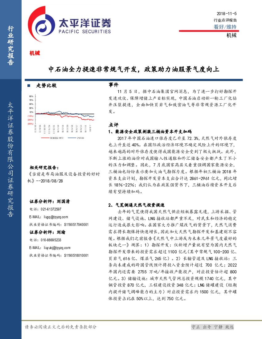 太平洋证券:机械行业点评报告:中石油全力提速非常规气开发,政策助力油服景气度向上.pdf