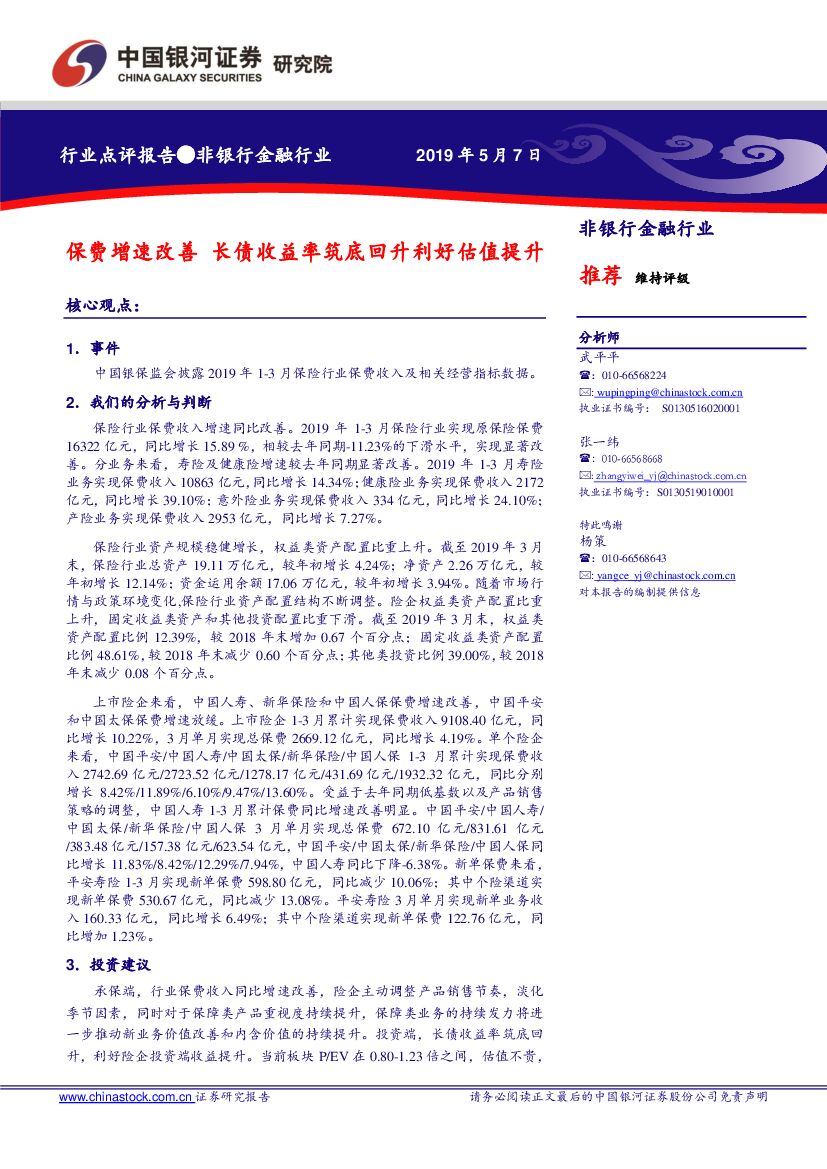 中国银河:非银行金融行业点评报告:保费增速改善 长债收益率筑底回升利好估值提升.pdf