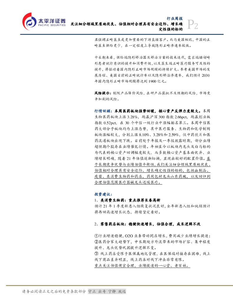 太平洋证券:医药周报:关注细分领域里质地优良、估值相对合理具有安全边际、增长确定性强的标的.pdf