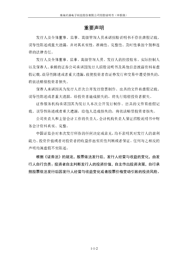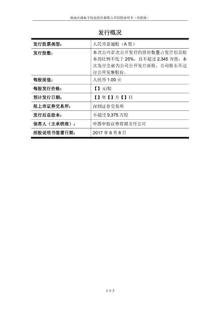 珠海元盛电子科技股份有限公司深交所创业板IPO上市招股说明书.pdf