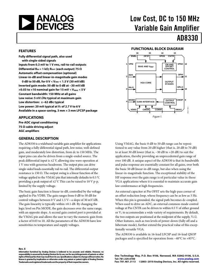 NATIONAL SEMICONDUCTOR - May 27, 2008 DS15BA101 1.5 Gbps Differential Buffer with Adjustable Output Voltage General 说明书
