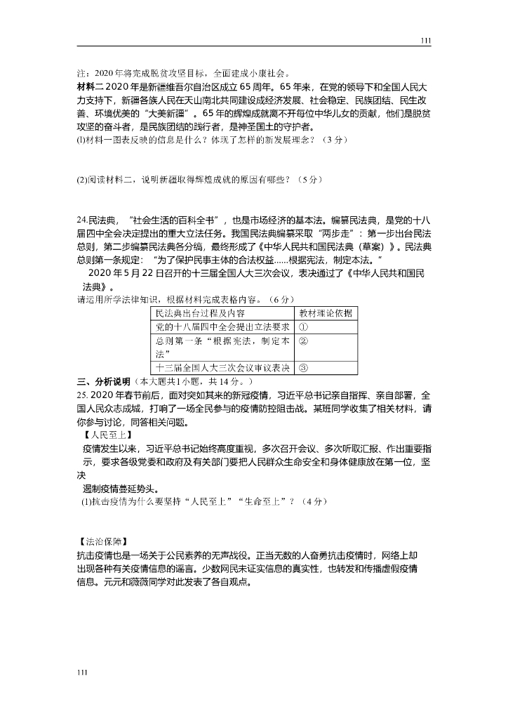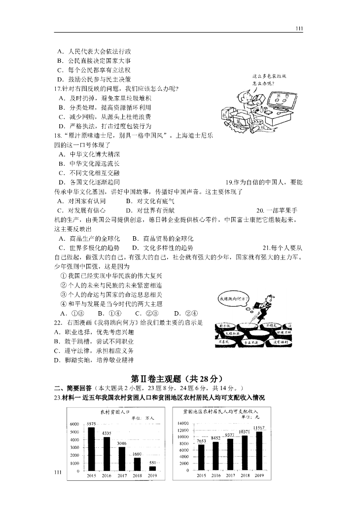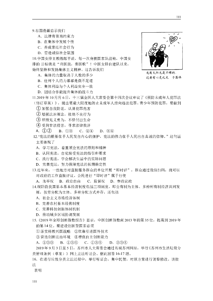 昆山市2020年初三道德与法治调研试卷(含答案)附答案.doc
