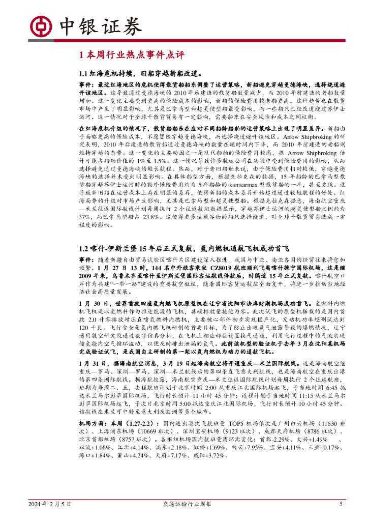中银证券:交通运输行业周报红海危机致旧船穿越新船改道,喀什-伊斯兰堡15年后正式复航.pdf