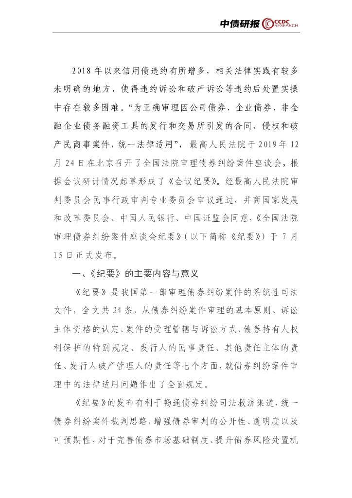 中债研发中心:《全国法院审理债券纠纷案件座谈会纪要》解读.pdf