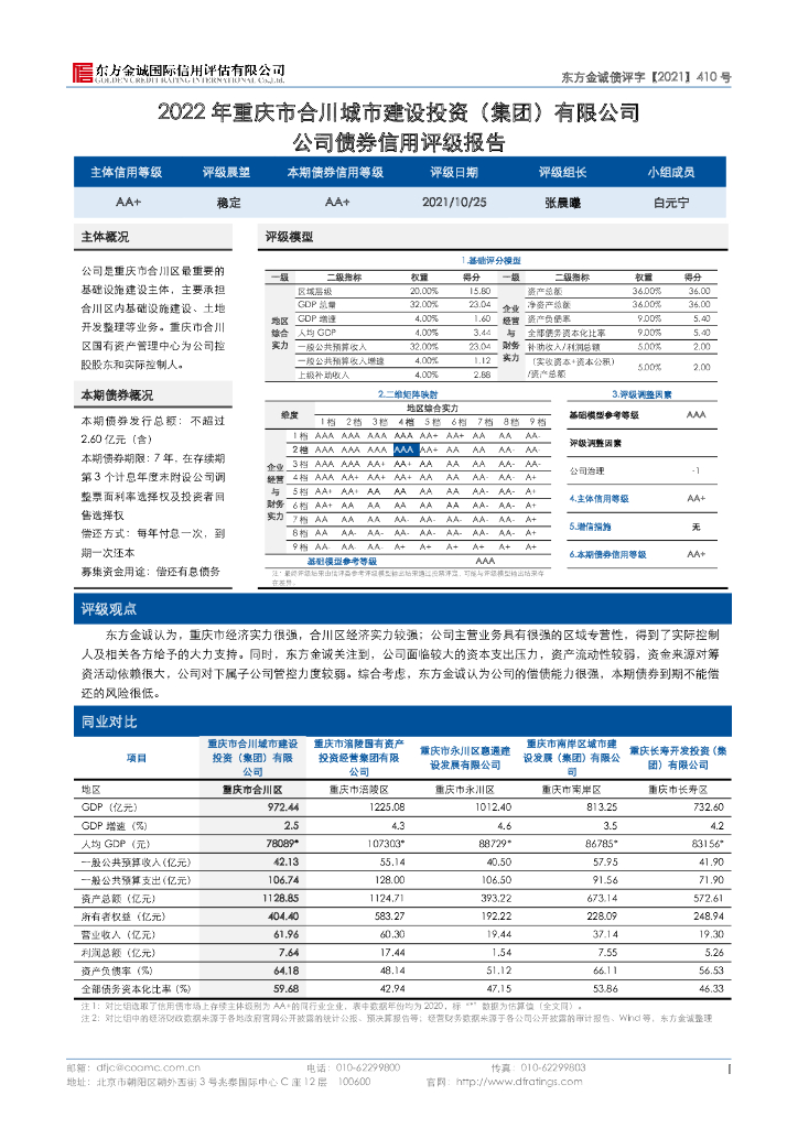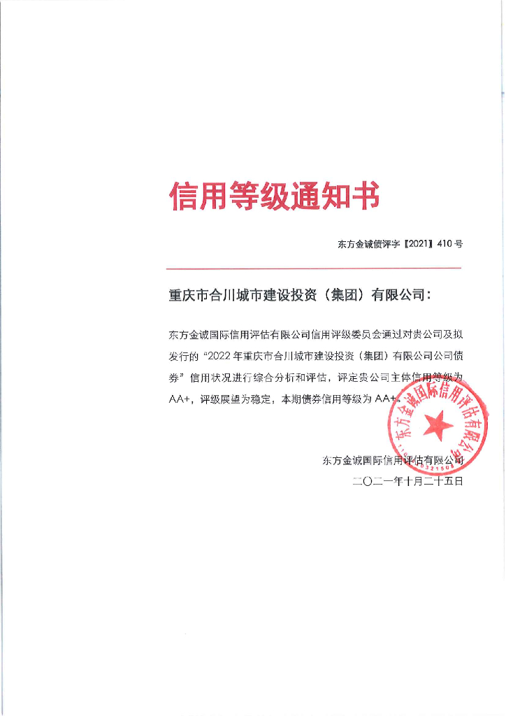 东方金诚:2022年重庆市合川城市建设投资(集团)有限公司公司债券信用评级报告.pdf