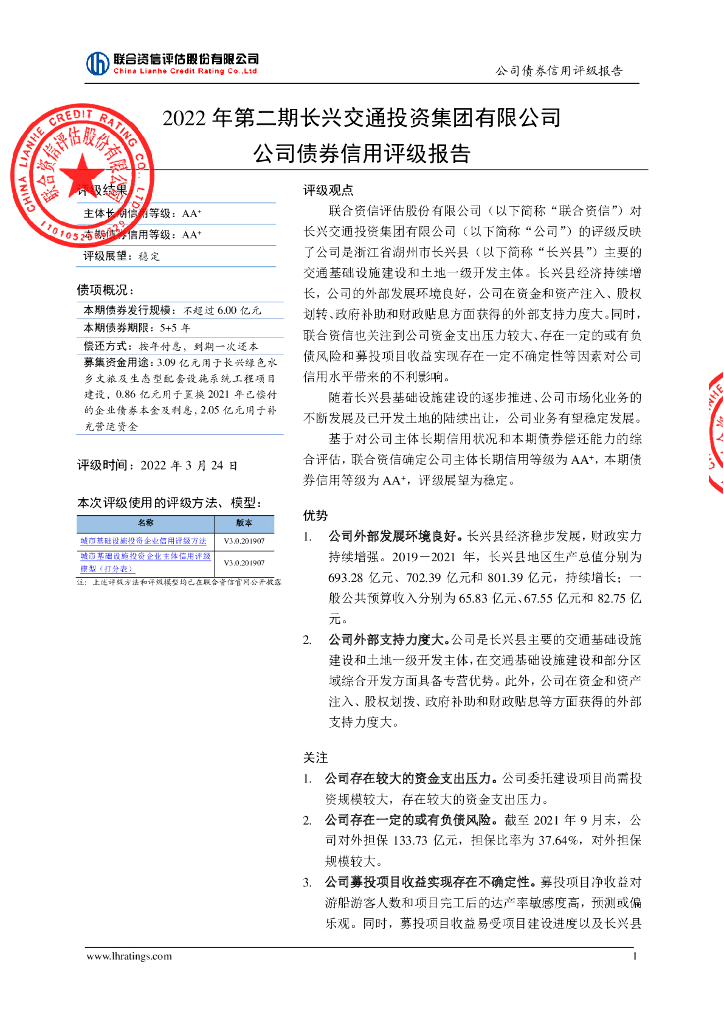 联合资信:2022年第二期长兴交通投资集团有限公司公司债券信用评级报告.pdf