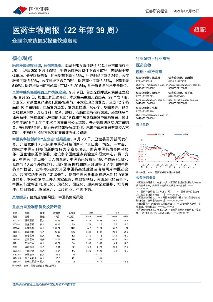 国信证券:医药生物周报(22年第39周):全国中成药集采报量快速启动.pdf