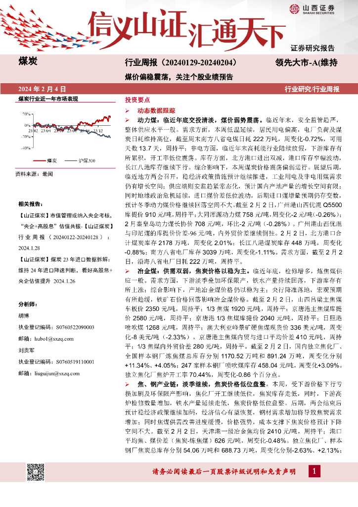 山西证券:煤炭行业周报:煤价偏稳震荡,关注个股业绩预告.pdf