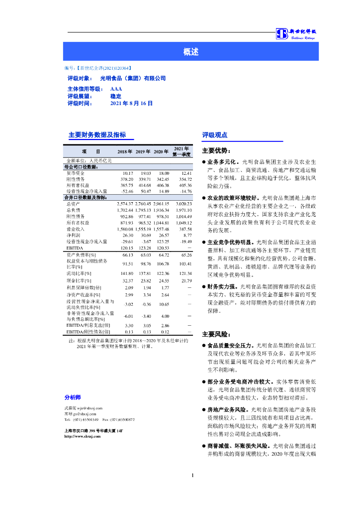 新世纪:光明食品(集团)有限公司主体信用评级报告.pdf
