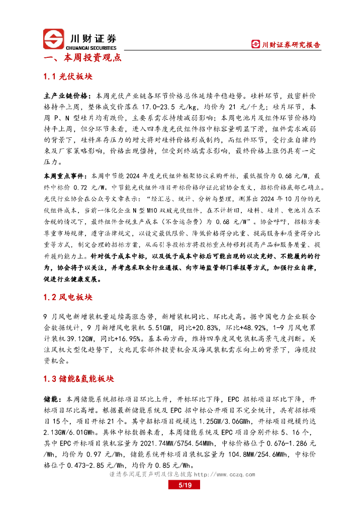 川财证券:新能源产业十月周报:新能源产业周报:光伏组件招标价格底部已确立,风电九月装机延续增长态势.pdf