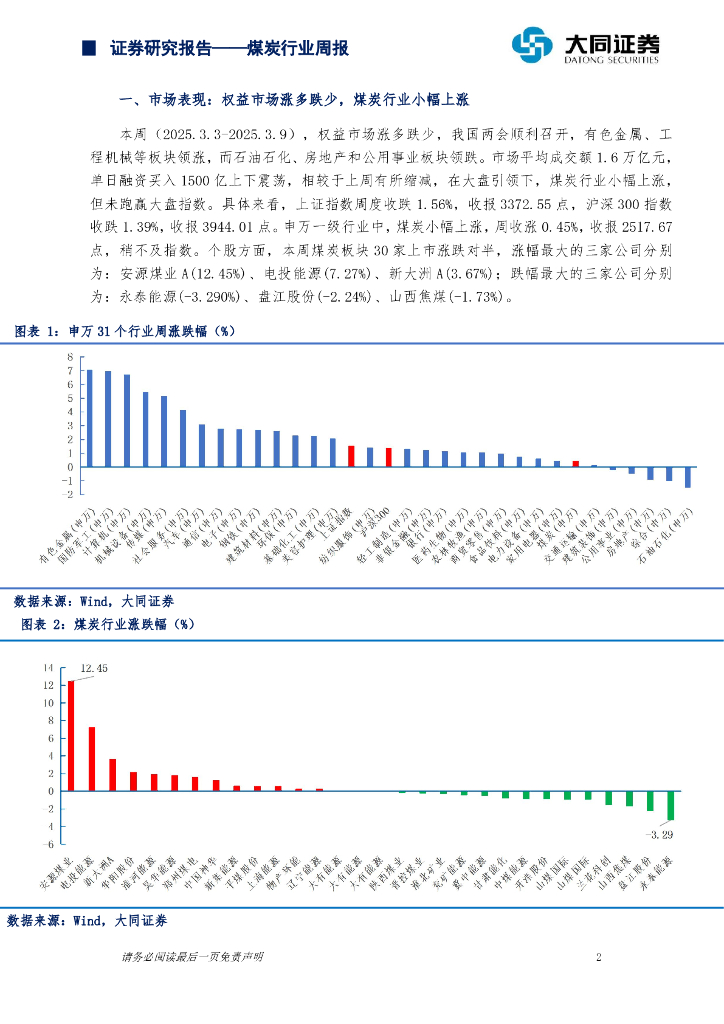 大同证券:煤炭行业周报:煤价小幅探长,适合逢低布局.pdf