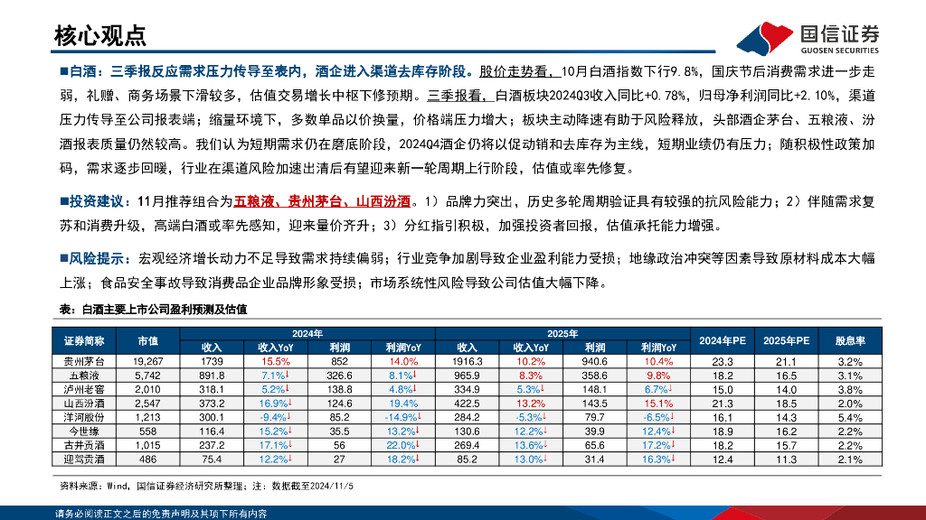 国信证券:白酒板块11月投资策略:渠道进入去库存阶段,静待需求磨底复苏.pdf