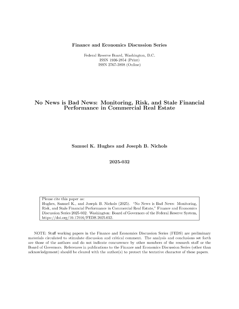 美联储:没有消息就是坏消息:商业房地产的监控、风险和糟糕的财务业绩(英文版).pdf
