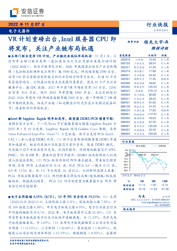 安信证券:电子元器件:VR计划重磅出台,Intel服务器CPU即将发布,关注产业链布局机遇.pdf