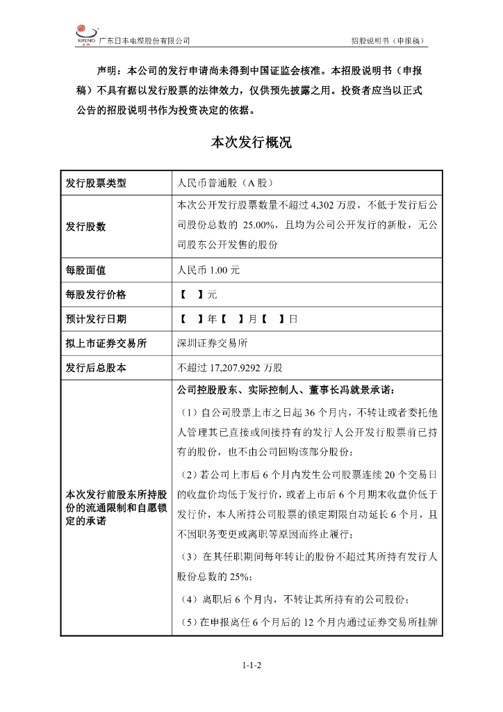 广东日丰电缆股份有限公司深交所主板IPO上市招股说明书.pdf