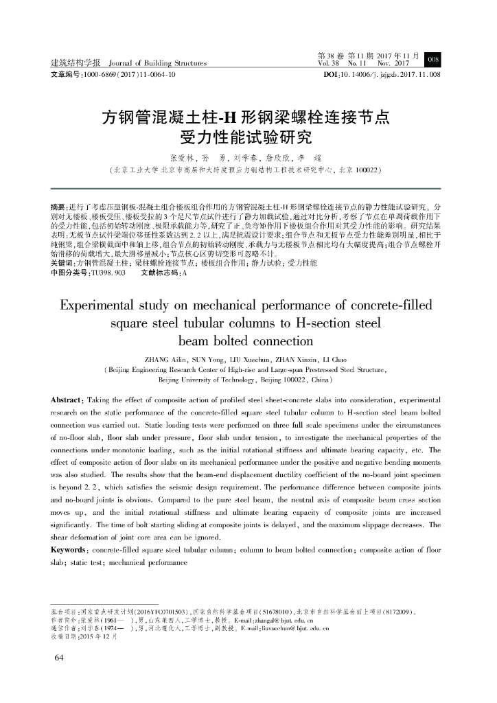 方钢管砼柱H形钢梁螺栓连接节点受力性能.pdf