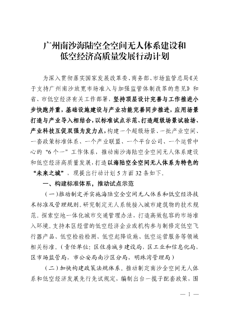 2024广州南沙海陆空全空间无人体系建设和低空经济高质量发展行动计划.pdf