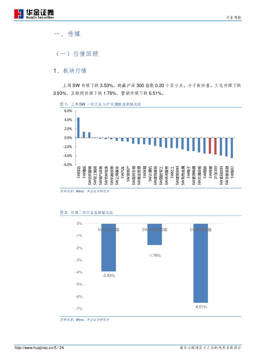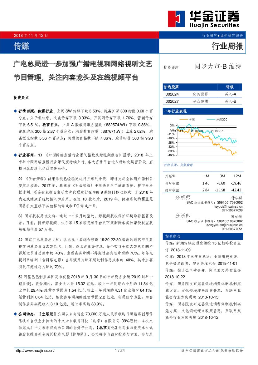 华金证券:传媒行业周报:广电总局进一步加强广播电视和网络视听文艺节目管理,关注内容龙头及在线视频平台.pdf