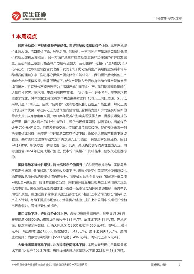 民生证券:煤炭周报:陕西推动保供产能向储备产能转化,看好供给收缩驱动煤价上涨.pdf