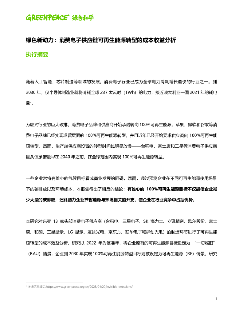 绿色和平:绿色新动力:消费电子供应链可再生能源转型的成本收益分析(执行摘要).pdf