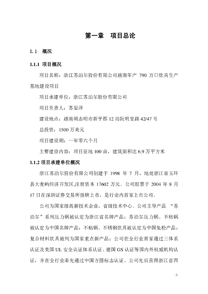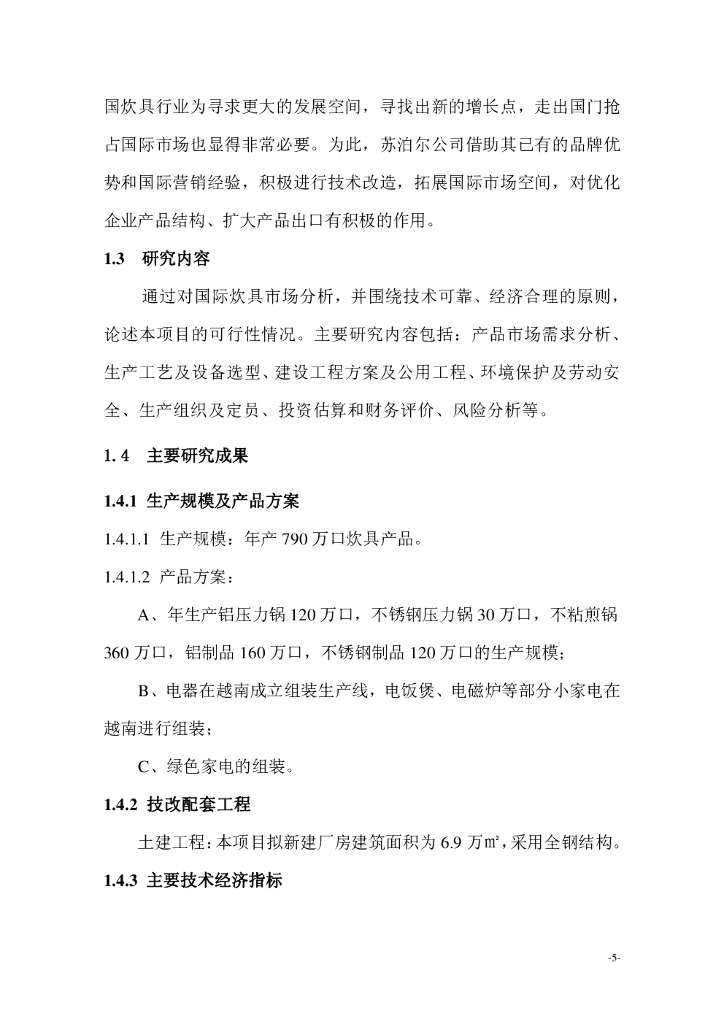 苏泊尔:越南年产790万口炊具生产基地建设项目可行性报告.pdf