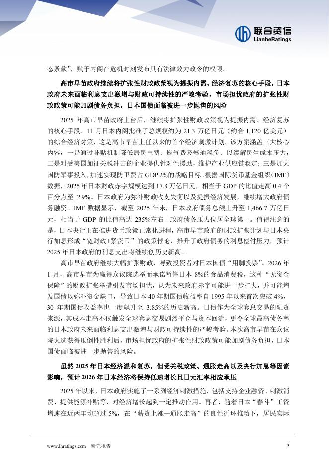 联合资信评估:高市早苗众议院获得压倒性胜利,令日本政局的右翼民粹色彩显著上升-260209.pdf