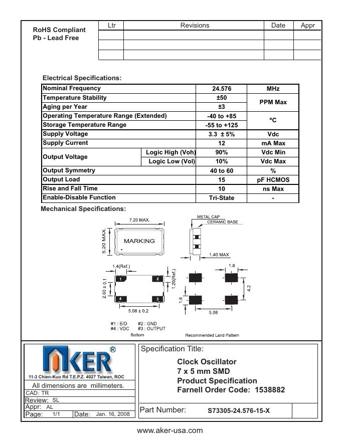 AKER 7 x 5 mm SMD Clock Oscillator 数据手册.pdf