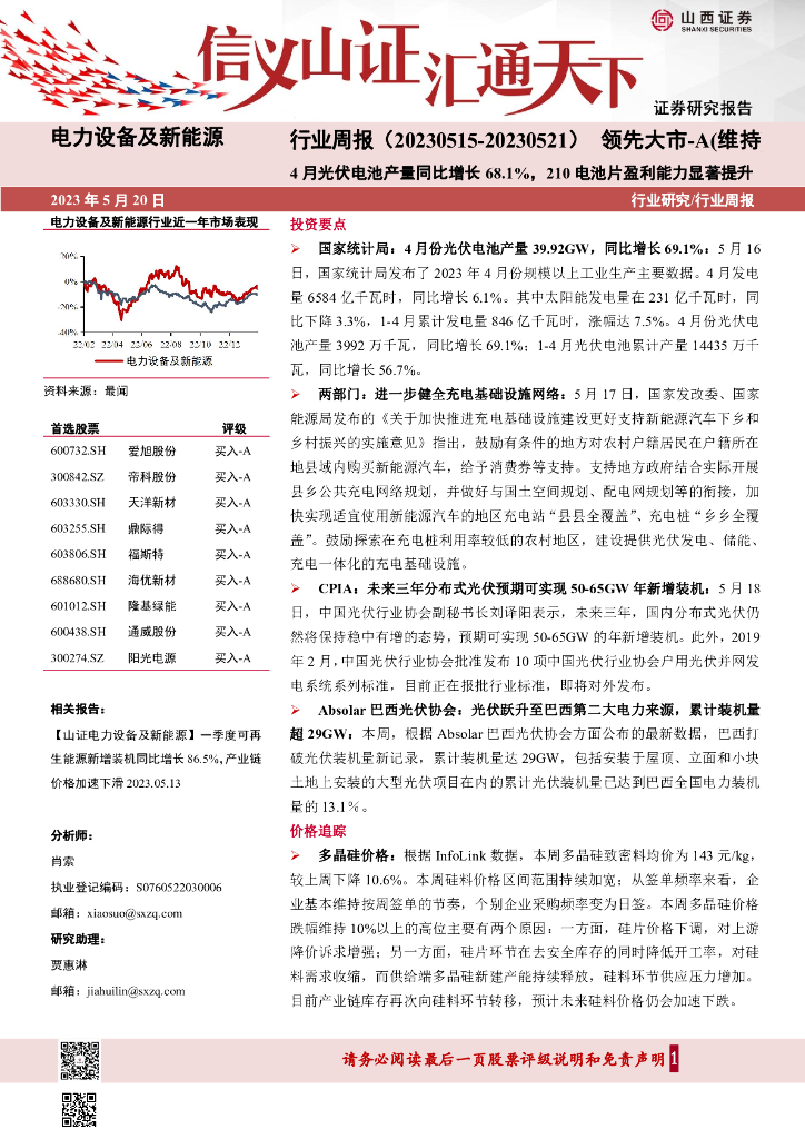 山西证券:电力设备及新能源行业周报:4月光伏电池产量同比增长68.1%,210电池片盈利能力显著提升.pdf