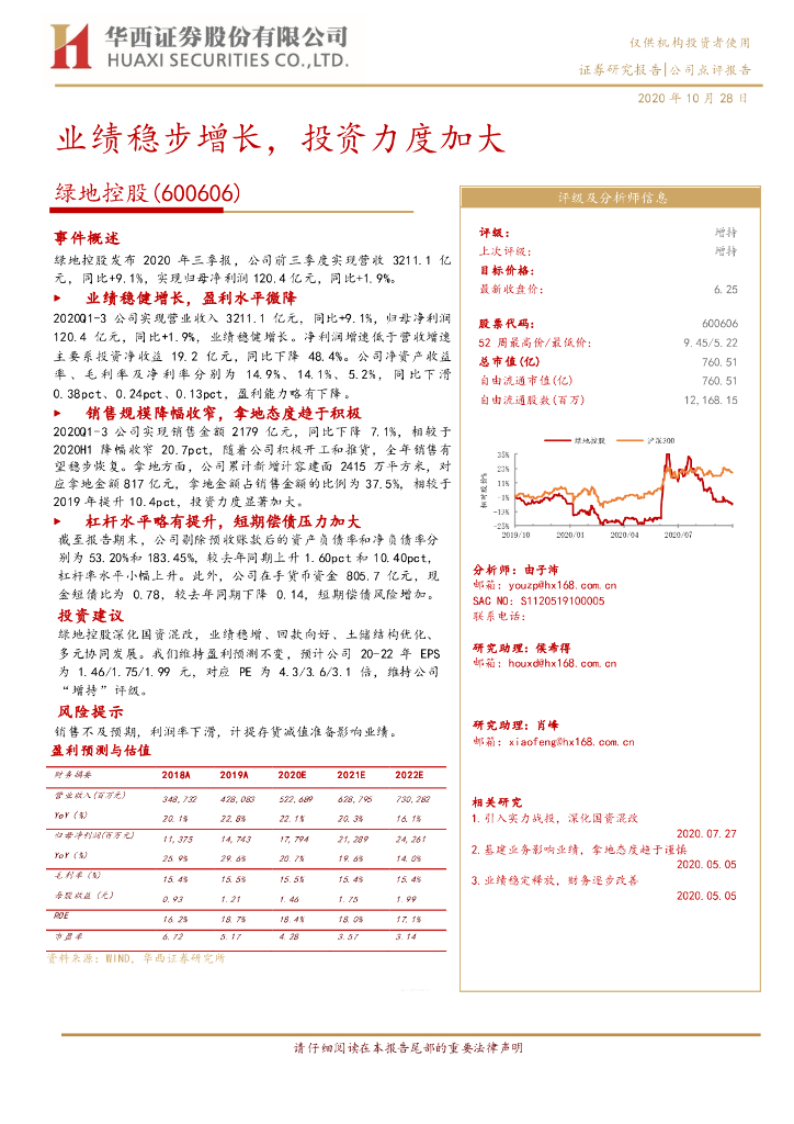 华西证券:绿地控股(600606)-业绩稳步增长,投资力度加大.pdf