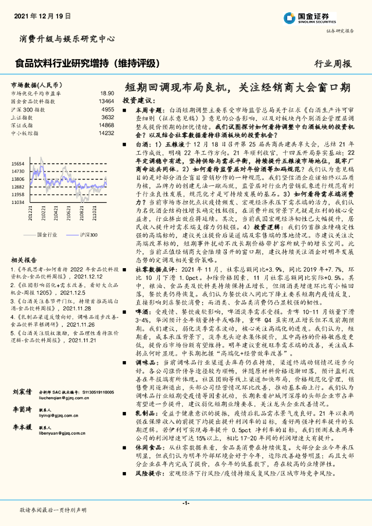 国金证券:食品饮料行业研究:短期回调现布局良机,关注经销商大会窗口期.pdf