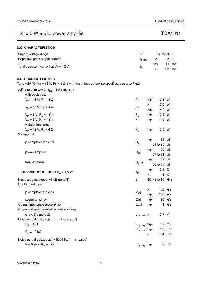 PHILIPS TDA1011 2 to 6 W audio power amplifier 数据手册.pdf