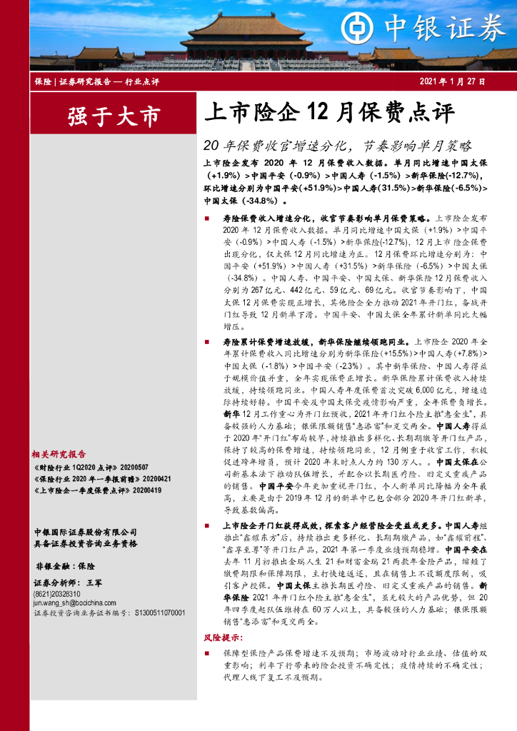 中银证券:保险-上市险企12月保费点评:20年保费收官增速分化,节奏影响单月策略.pdf