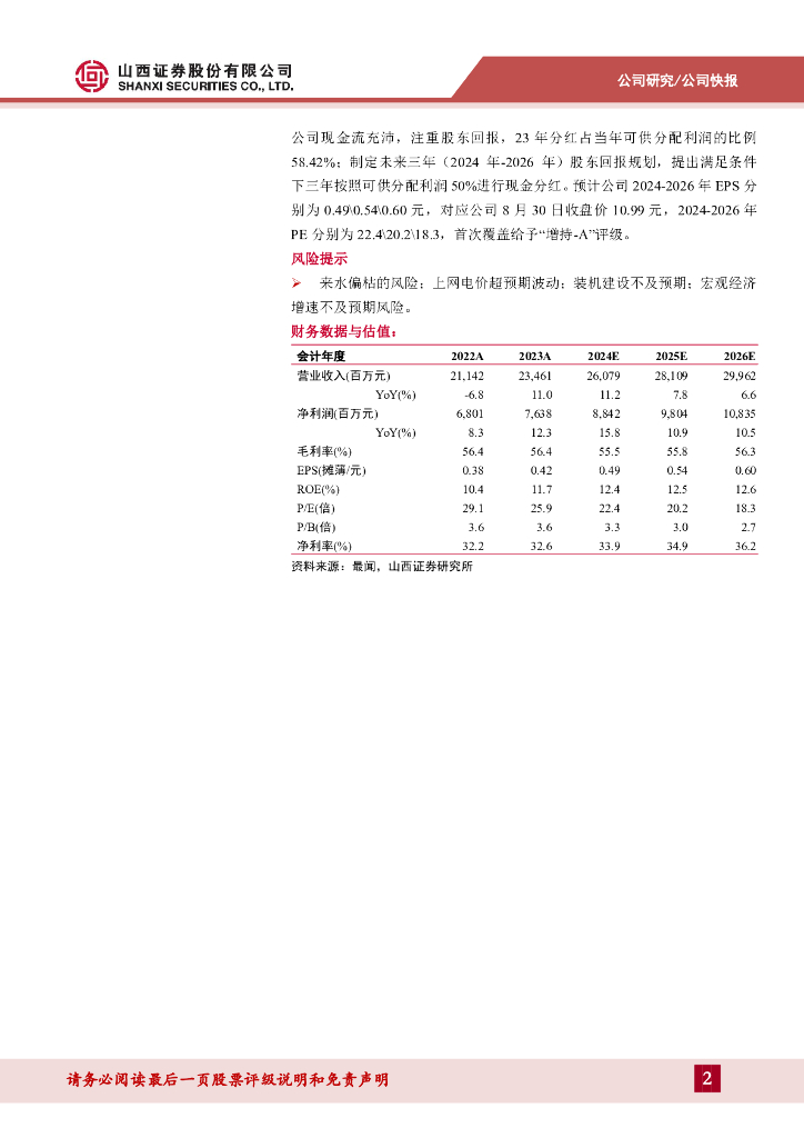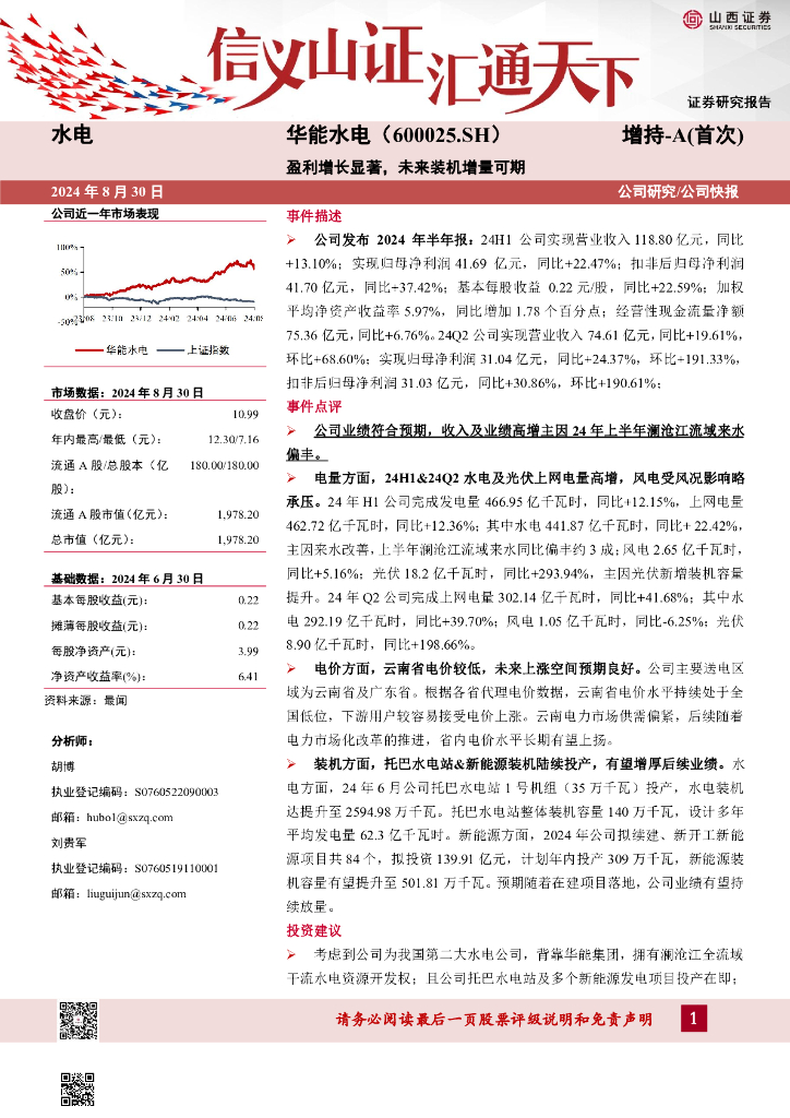 山西证券:华能水电(600025)-盈利增长显著,未来装机增量可期.pdf