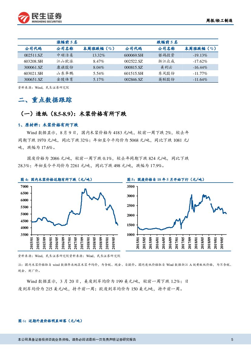 民生证券:轻工制造周报:木浆价格小幅下跌,生活用纸企业持续受益.pdf