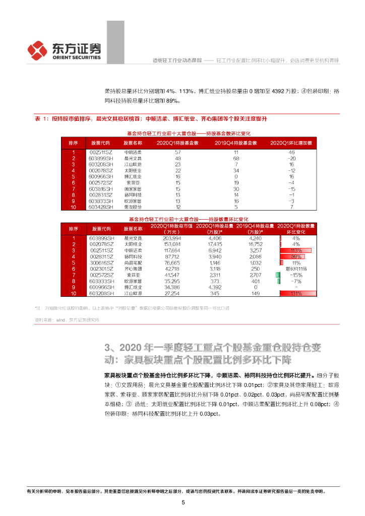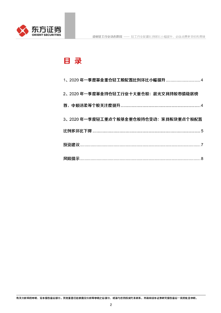 东方证券:2020年一季度轻工板块基金持仓分析:轻工行业配置比例环比小幅提升,必选消费更受机构青睐.pdf