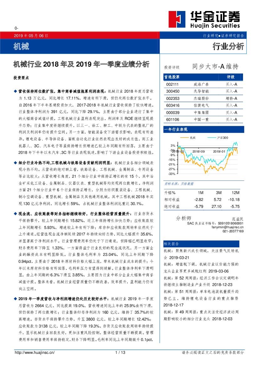 华金证券:机械行业2018年及2019年一季度业绩分析.pdf