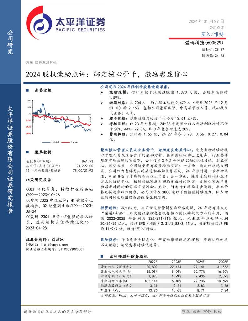 太平洋证券:爱玛科技(603529)-2024股权激励点评:绑定核心骨干,激励彰显信心.pdf
