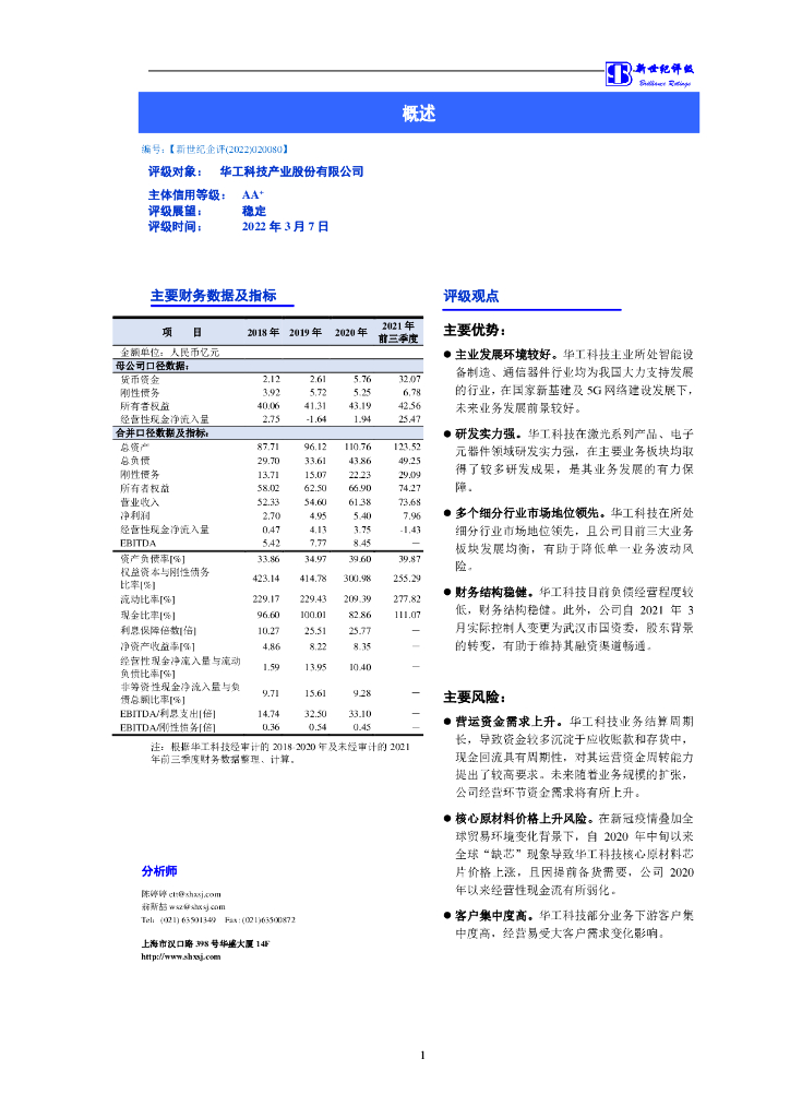 新世纪:华工科技产业股份有限公司主体信用评级报告及跟踪评级安排.pdf