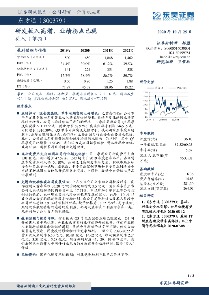 东吴证券:东方通(300379)-研发投入高增,业绩拐点已现.pdf