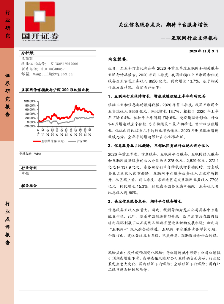 国开证券:互联网行业点评报告:关注信息服务龙头,期待平台服务增长.pdf