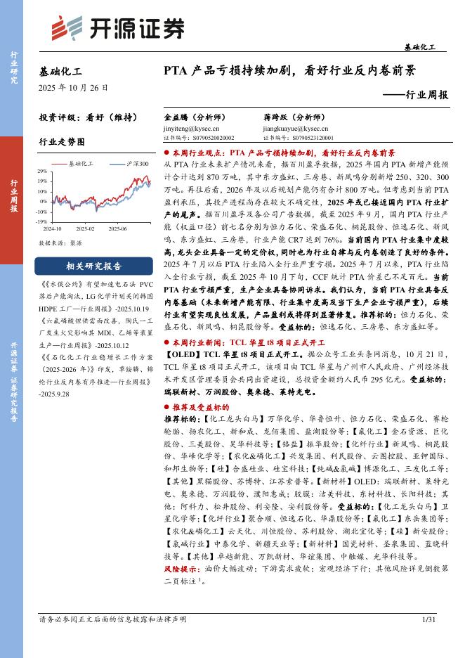 开源证券:基础化工行业周报:PTA产品亏损持续加剧,看好行业反内卷前景.pdf