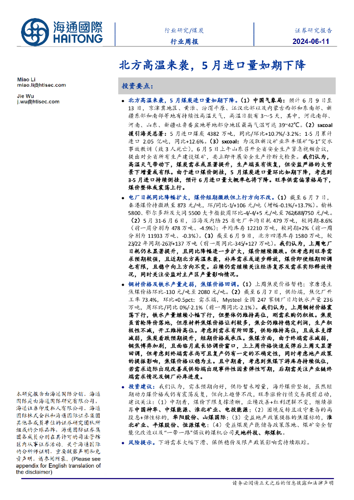 海通国际:煤炭行业周报:北方高温来袭,5月进口量如期下降.pdf